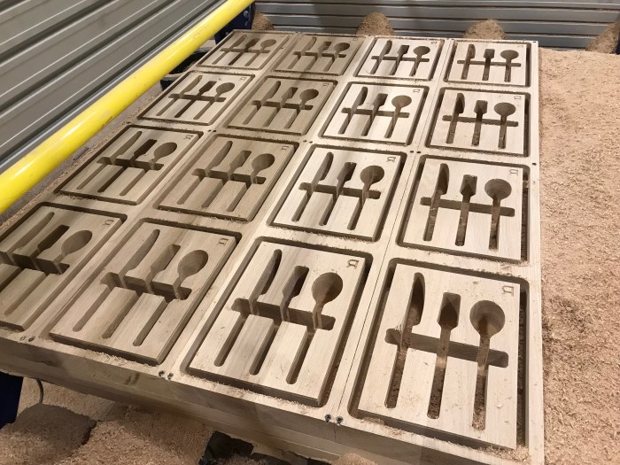 Restaurant silverware drawer inserts w/ logo, (Reversed R) produced on the CNC.