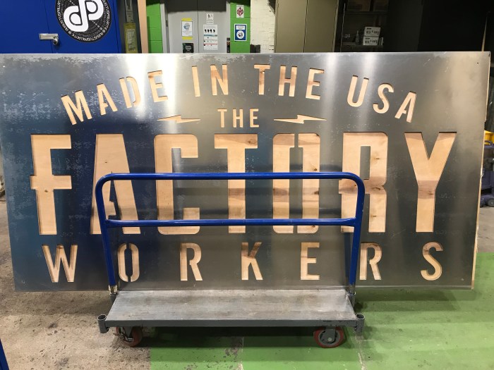 4 ft. x 8 ft. Stainless Steel Sign (plywood backing for transport) cut on the CNC.