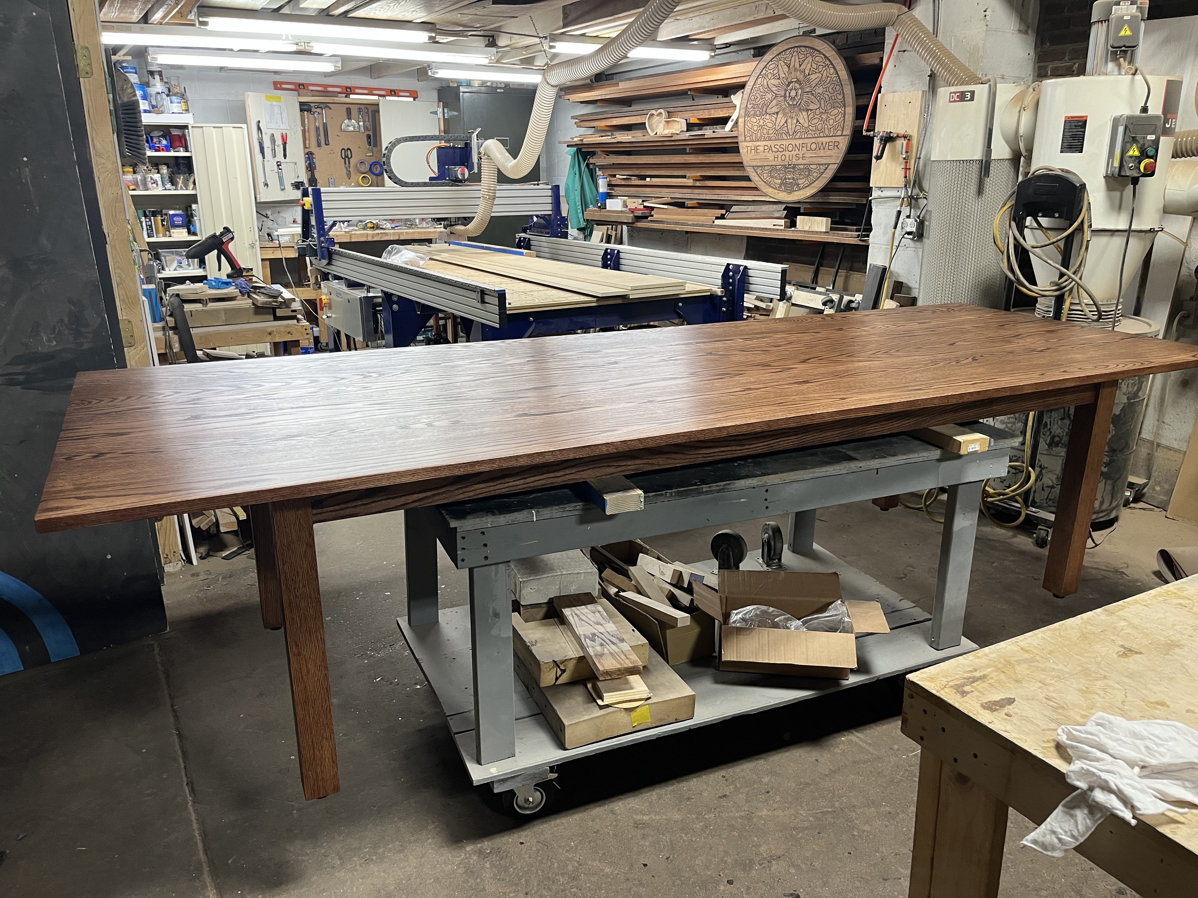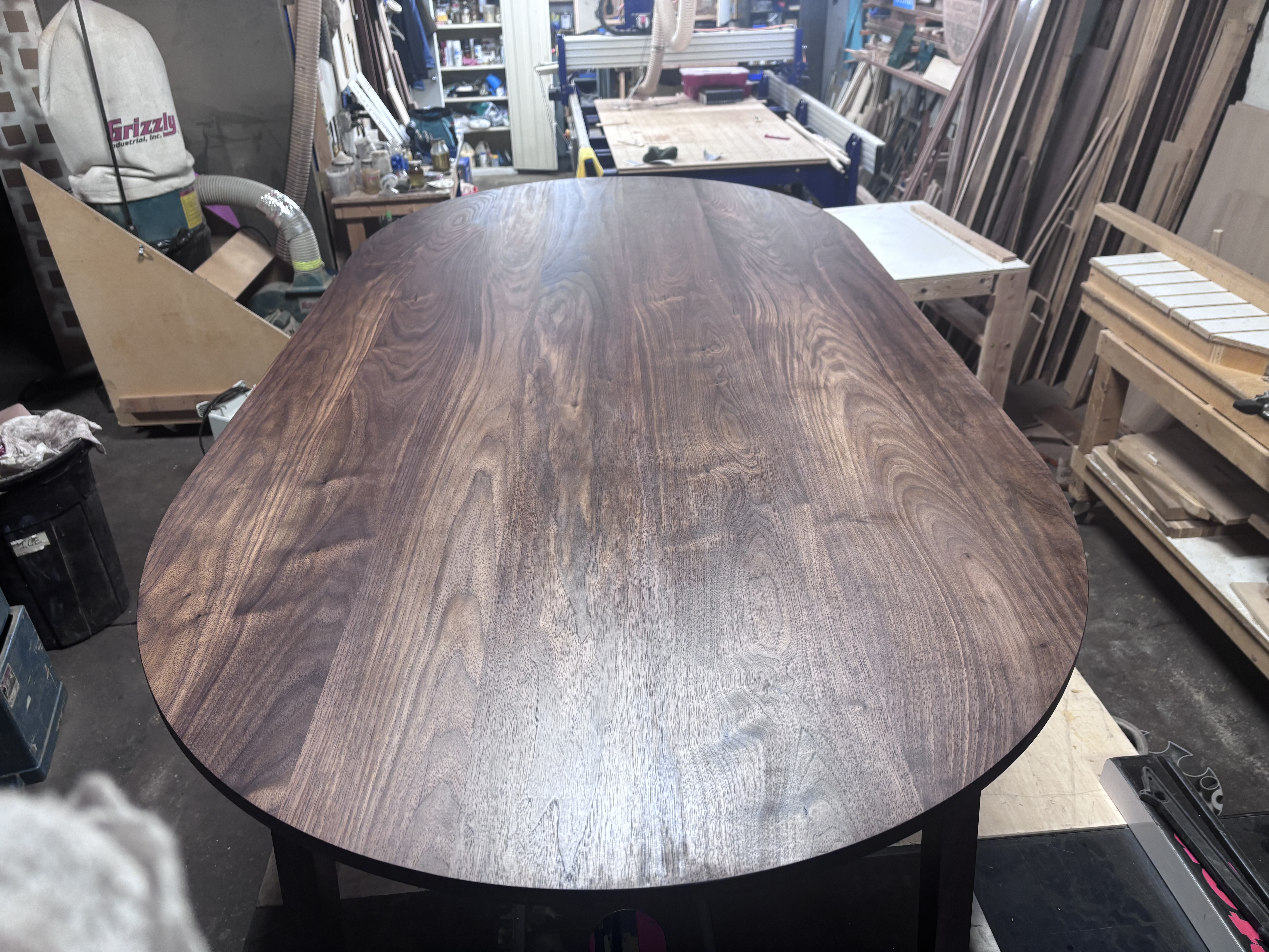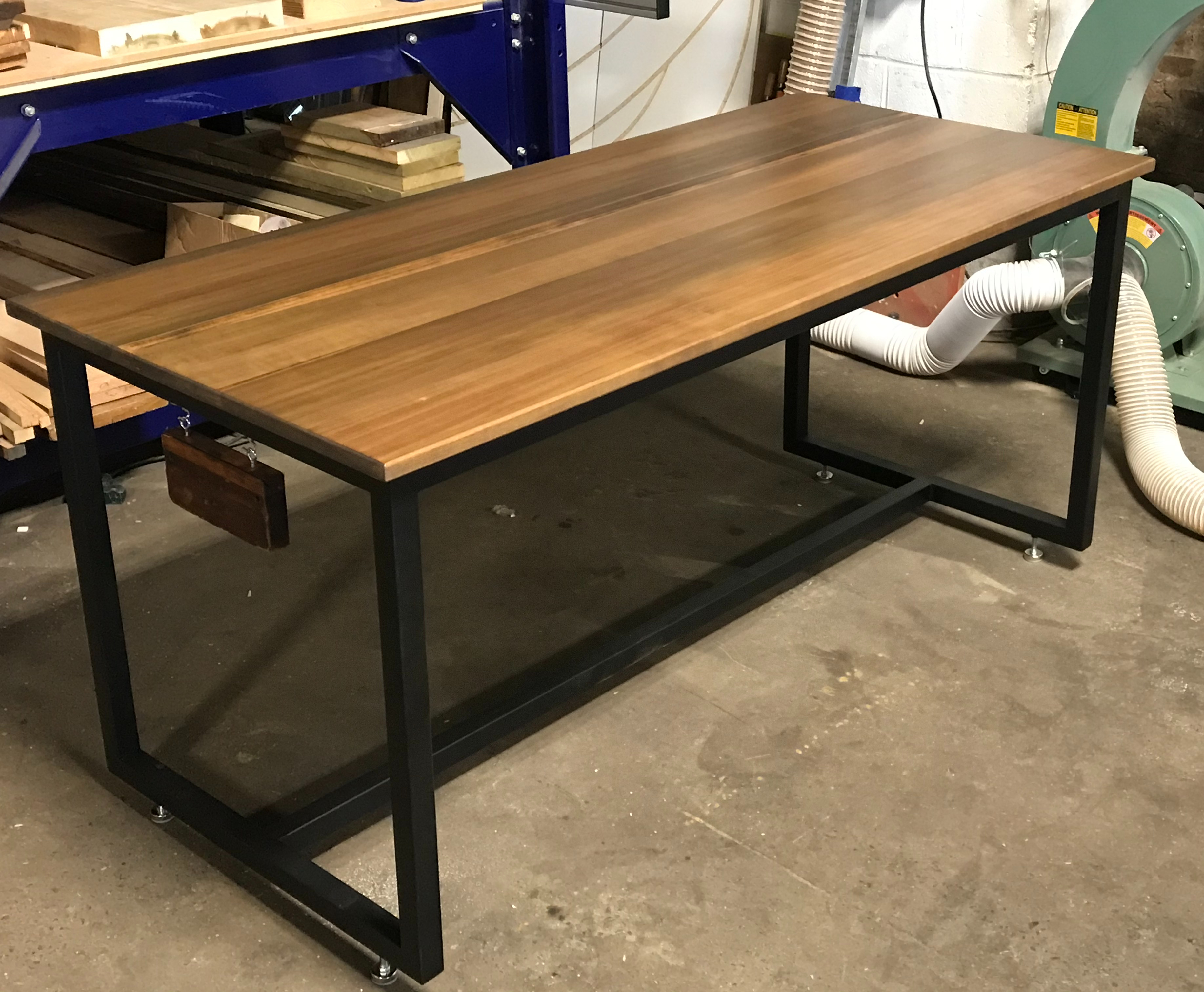 Black walnut table with cast iron legs built along side a private instruction customer.