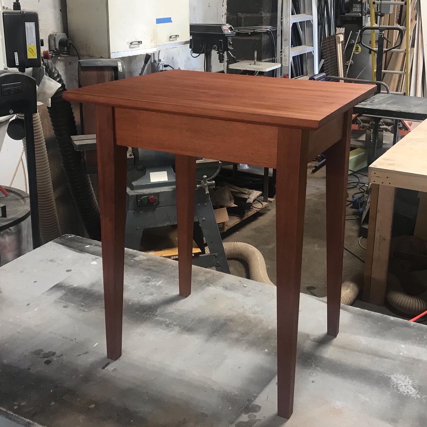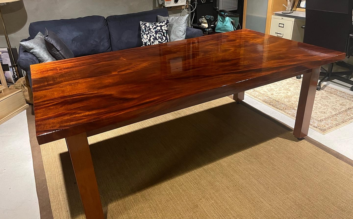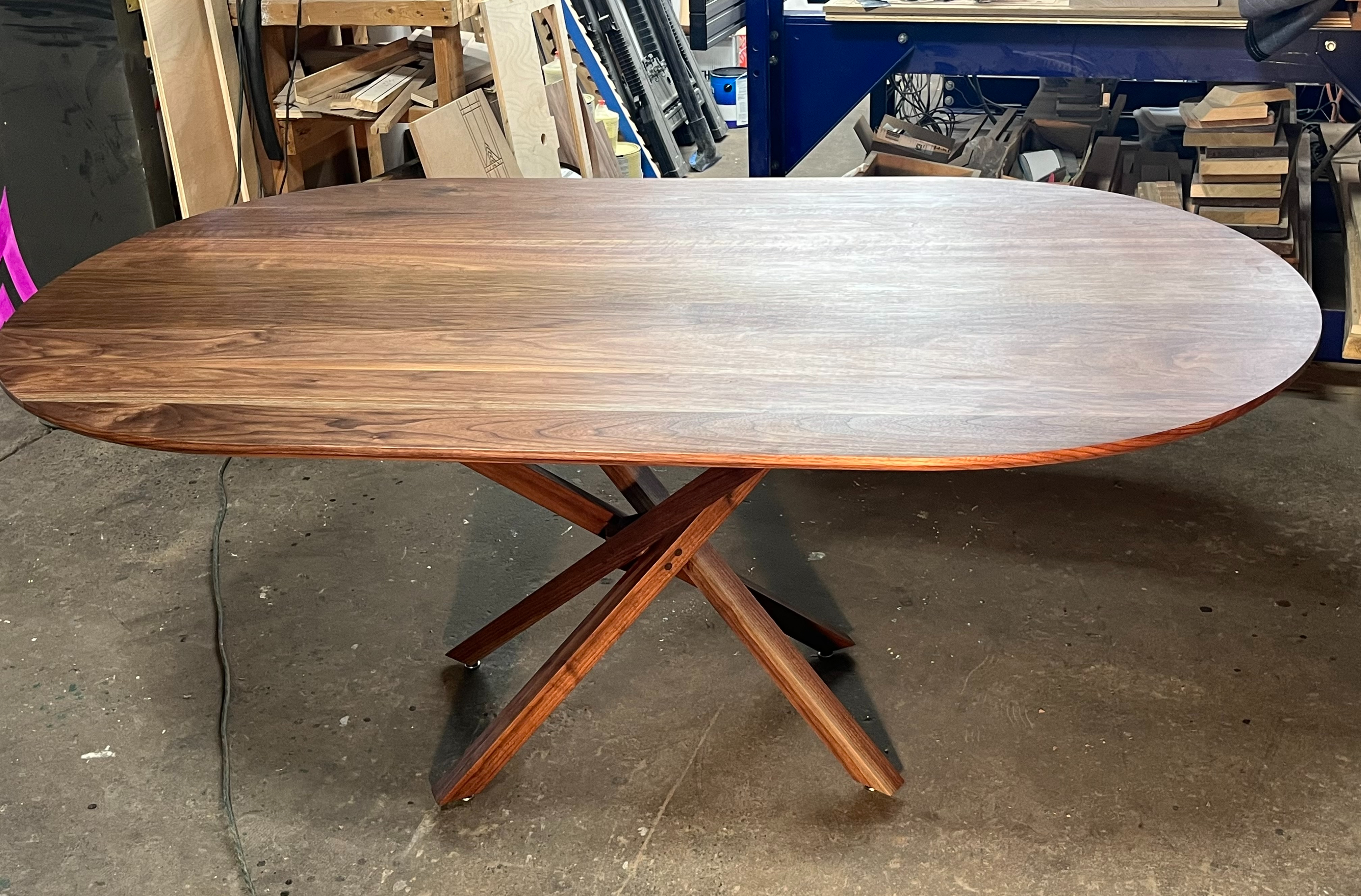 Black walnut table with cast iron legs built along side a private instruction customer.