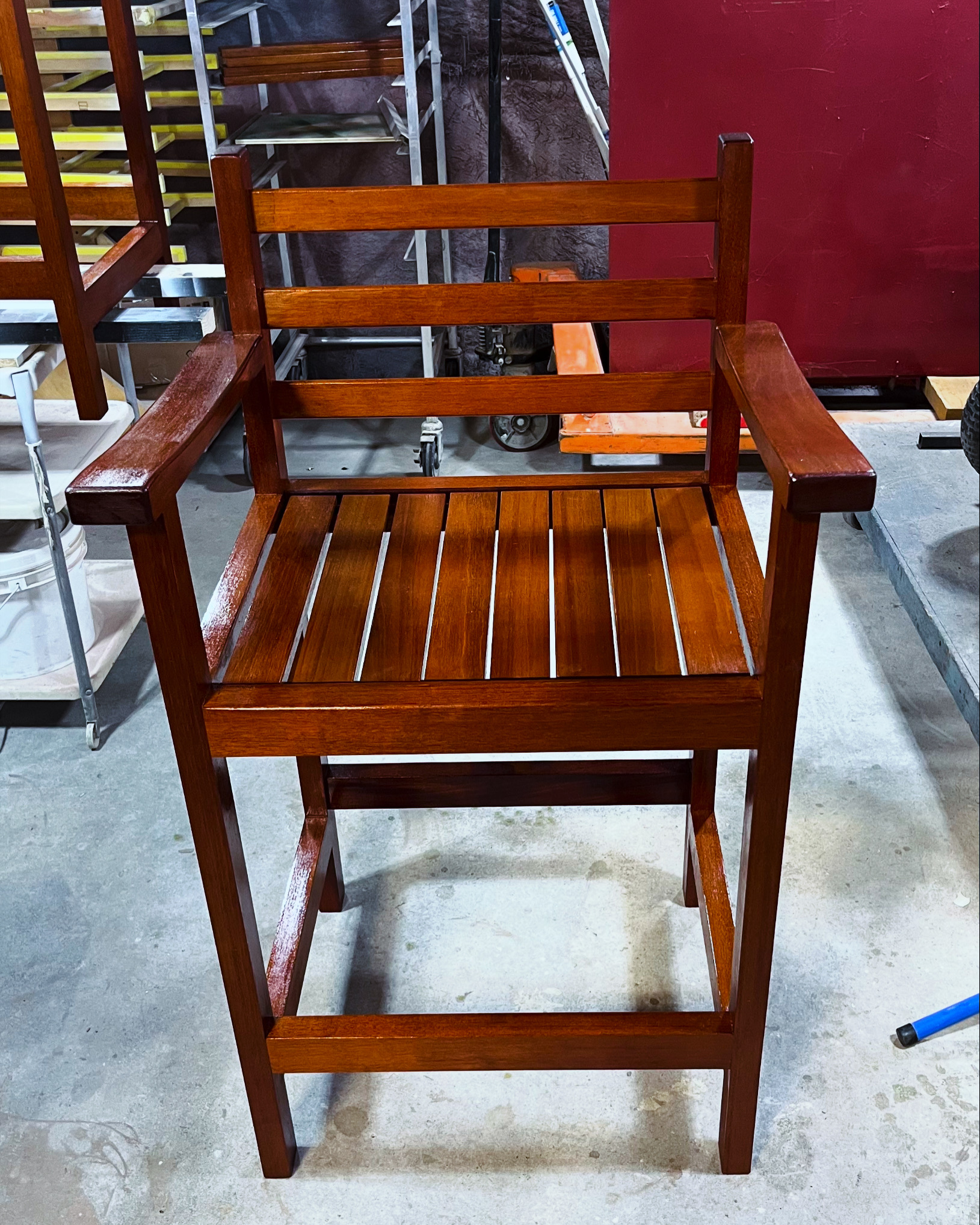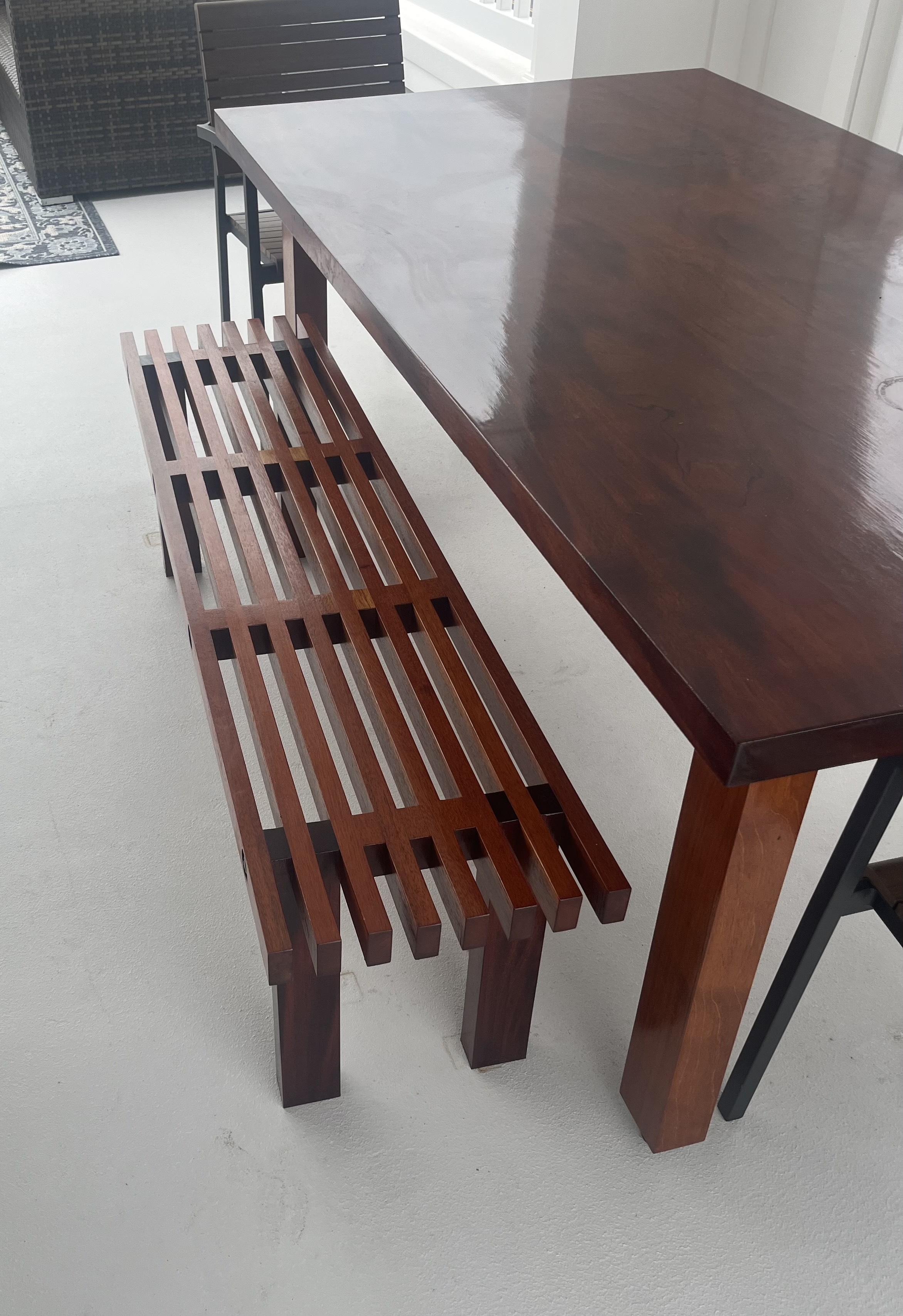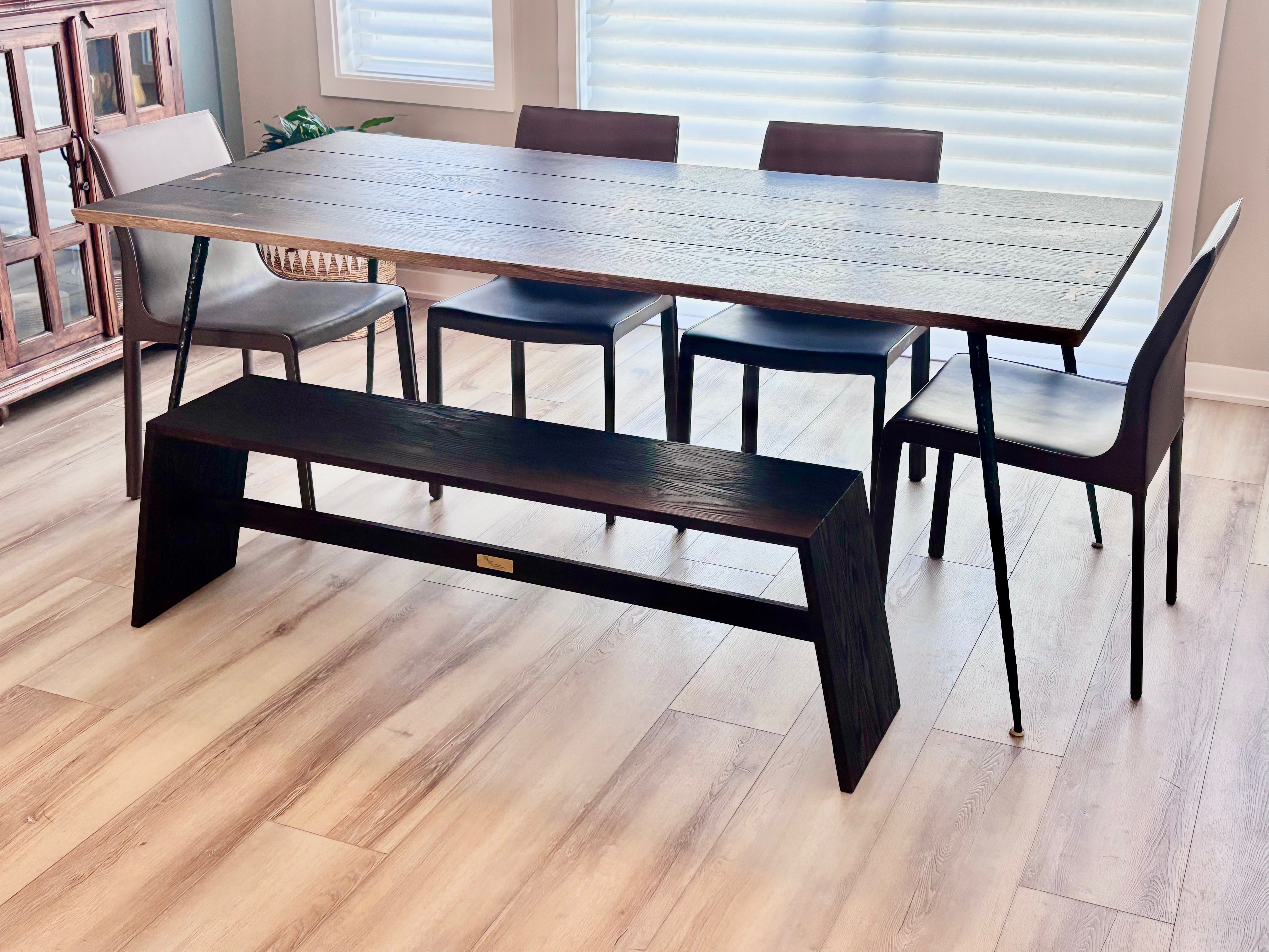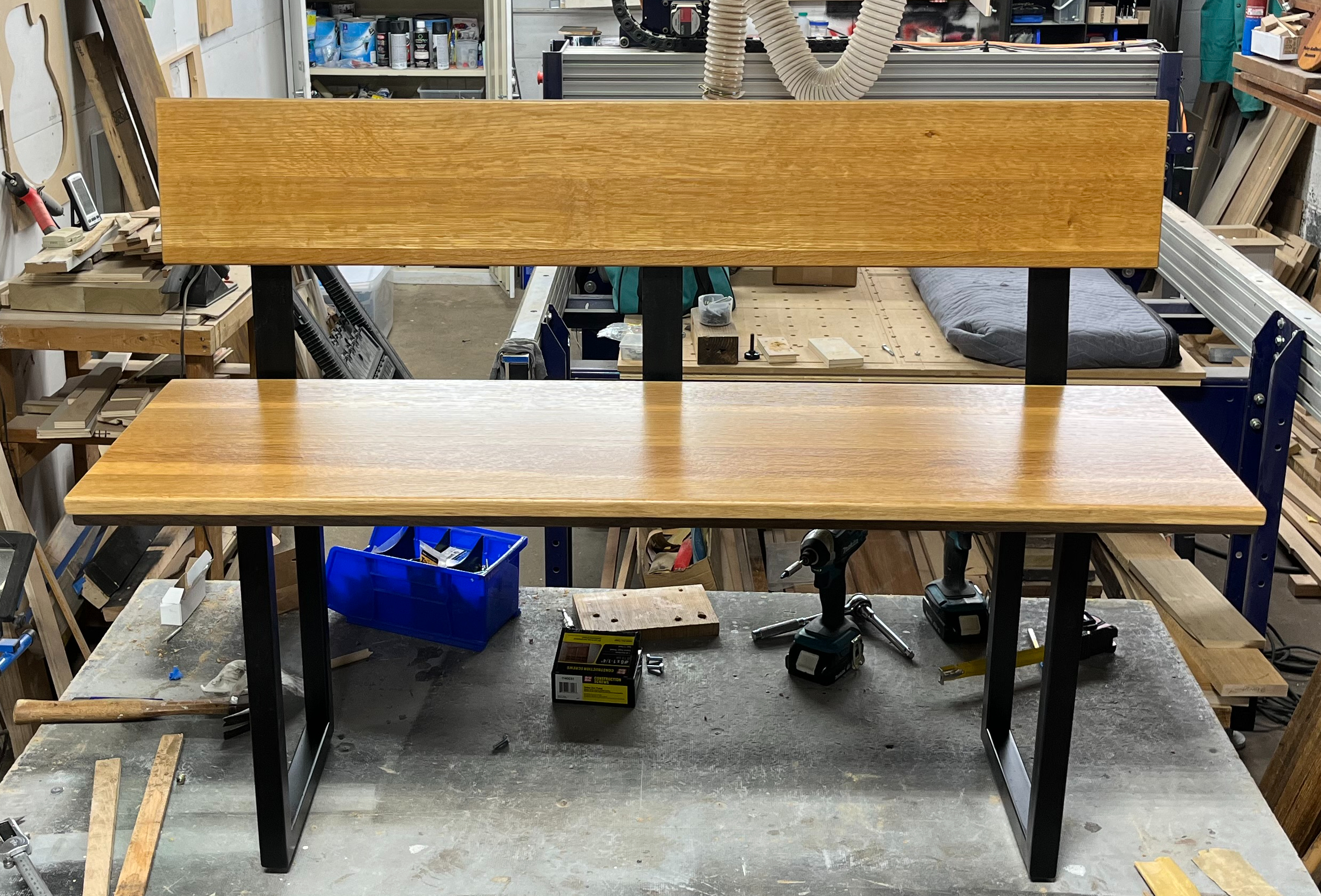 Repurposed rift sawn white oak bench (with custom steel legs and back support braces)