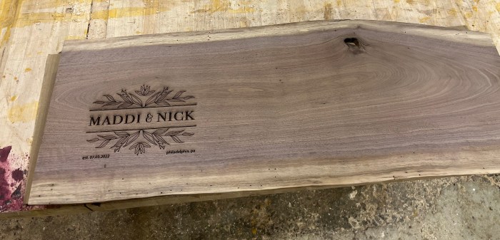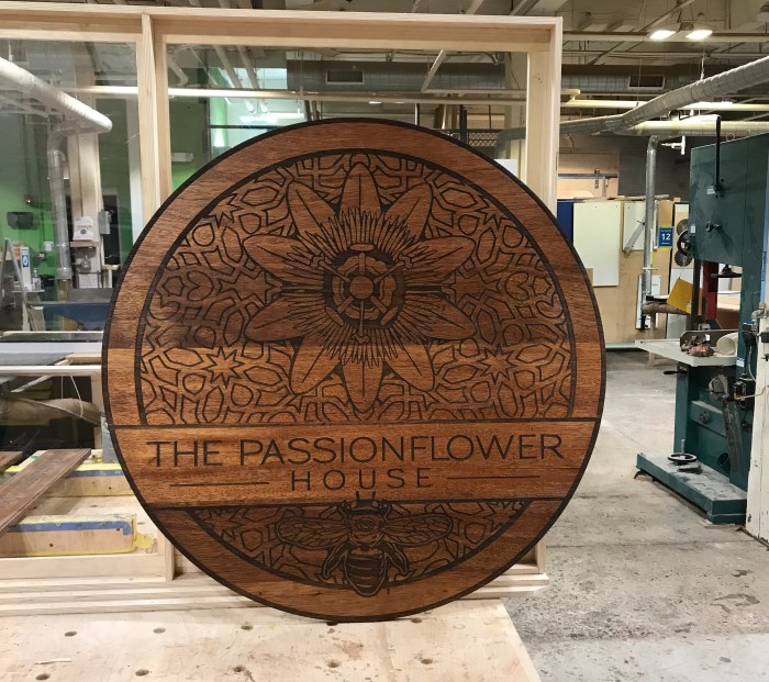 Laser engraved repurposed mahogany sign (my one and only client rejection. You be the judge)