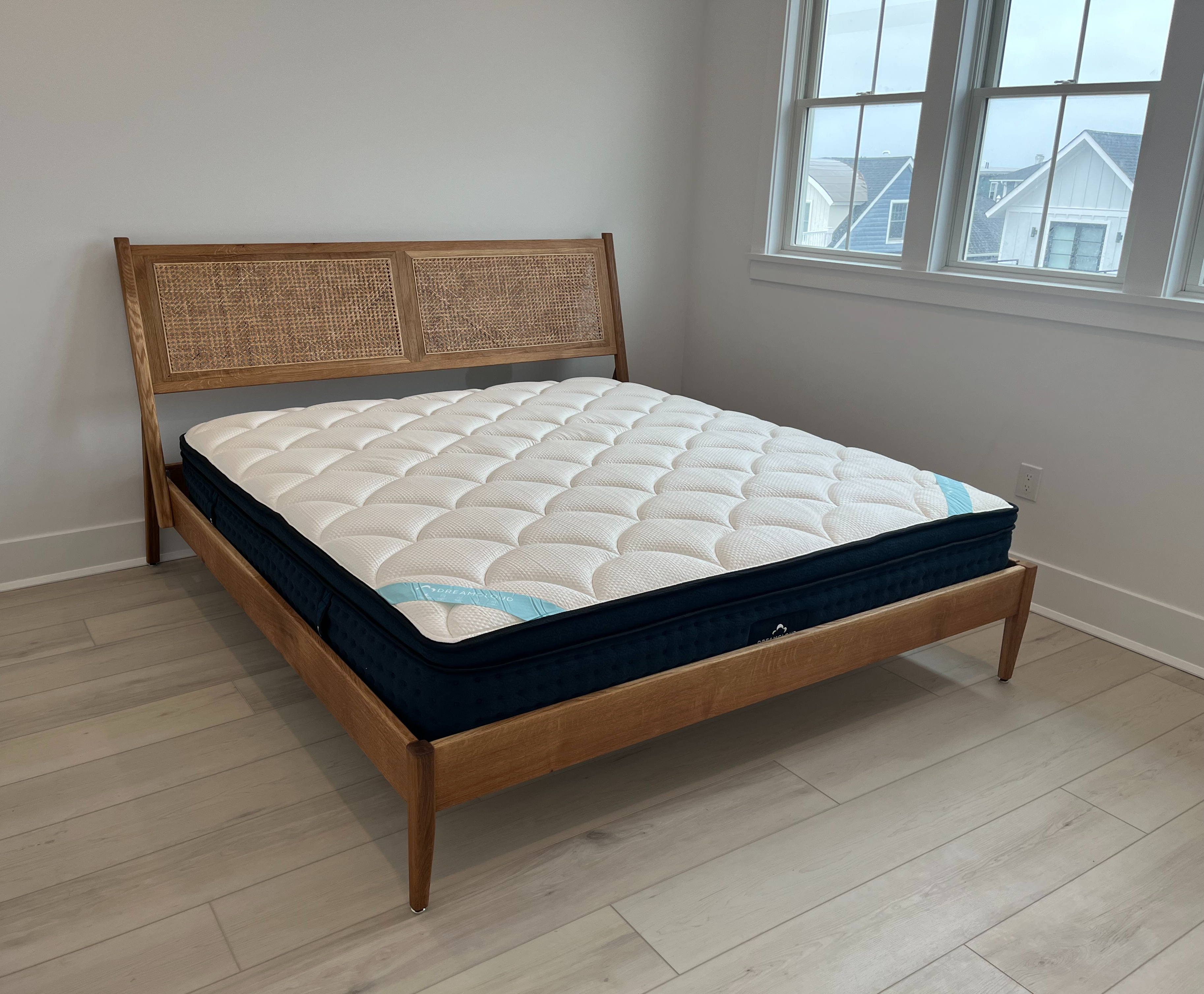 Caned white oak headboard and frame with black walnut live-edge bench (1of 3)