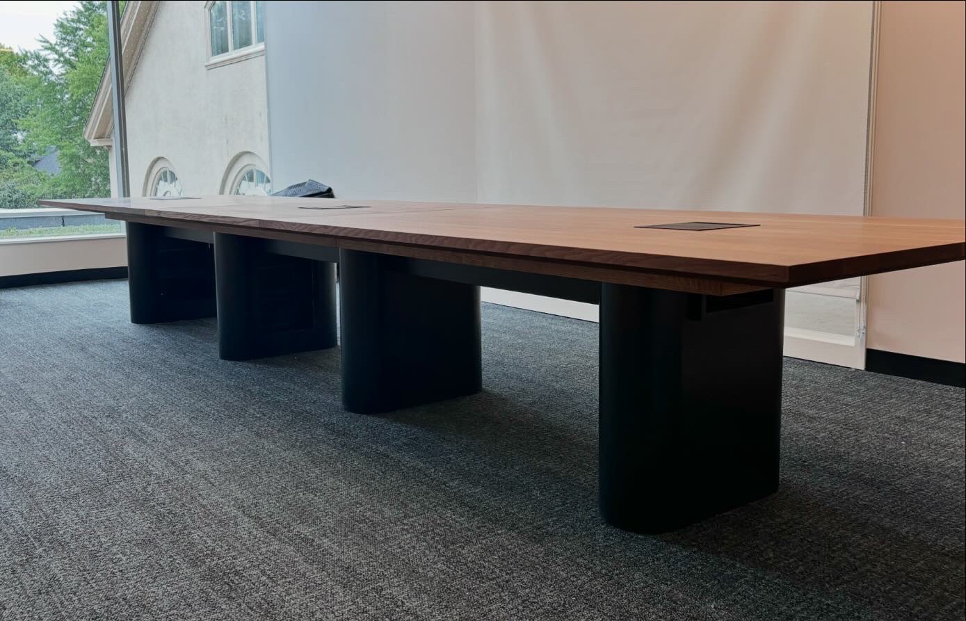 18′ Quarter sawn white oak conference room table with four pedestals and center power feed.