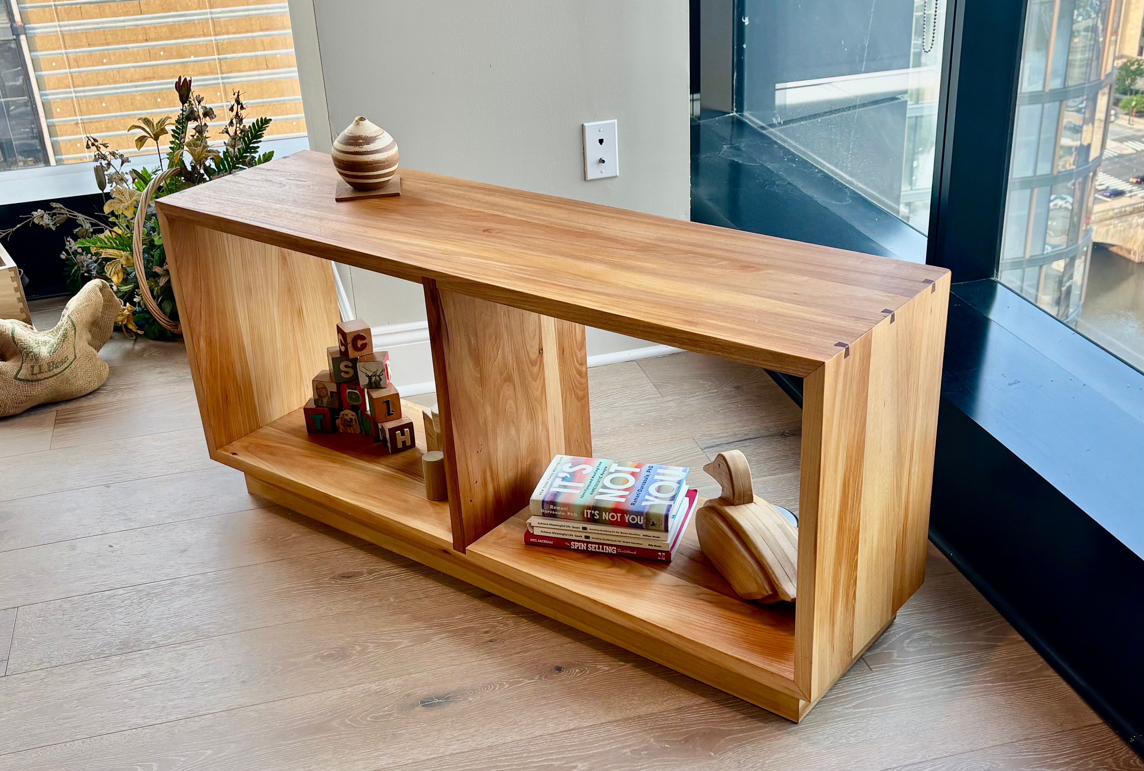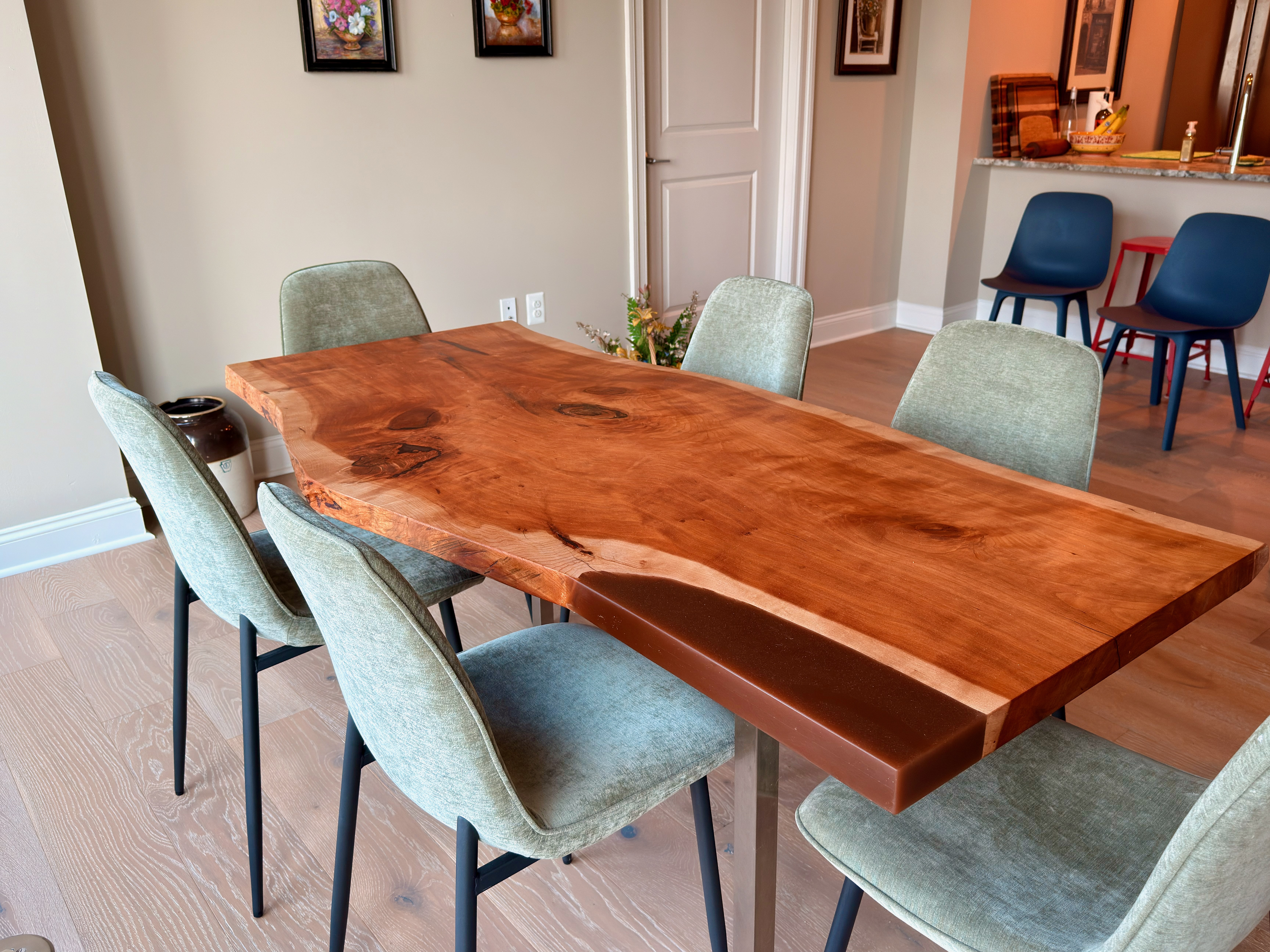 Coffee table made from repurposed cherry with 1 1/2″ steel frame.